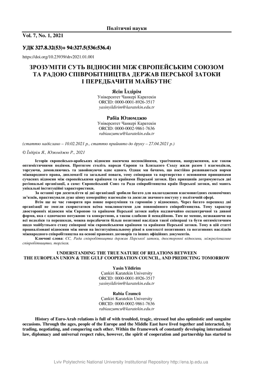 | dc.title.alternative | Зрозуміти суть відносин між ЄС та Радою співробітництва держав Перської затоки і передбачити майбутнє | |