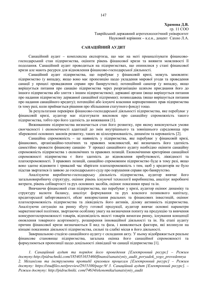 | dc.relation.references | 1. Санаційний аудит та порядок його проведення [Електронний ресурс] – Режим доступу:http://pidruchniki.com/1854051655460/finansi/sanatsiyniy_audit_poryadok_yogo_provedennya | |