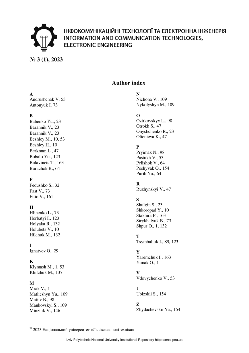 Зміст // Інфокомунікаційні технології та електронна інженерія. — Львів : Видавництво Львівської політехніки, 2023. — Том 3. — № 1. — С. 170–174.