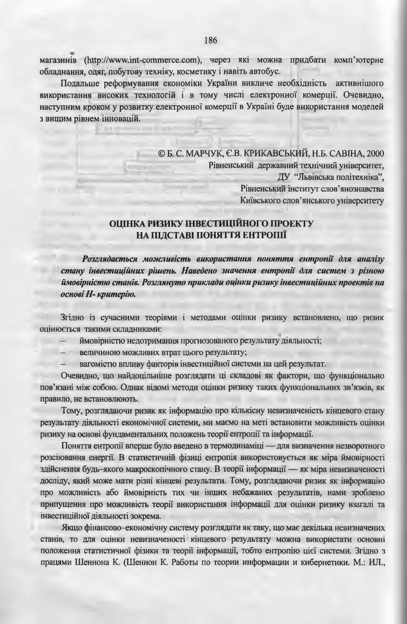 Оцінка ризику інвестиційного проекту на підставі поняття ентропії