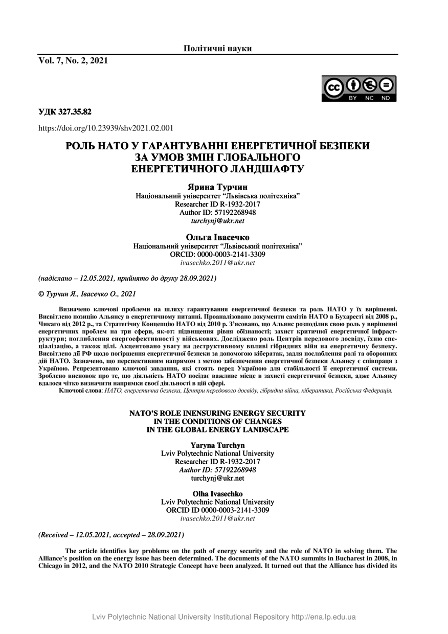 | dc.title.alternative | Роль НАТО у гарантуванні енергетичної безпеки за умов змін глобального енергетичного ландшафту | |