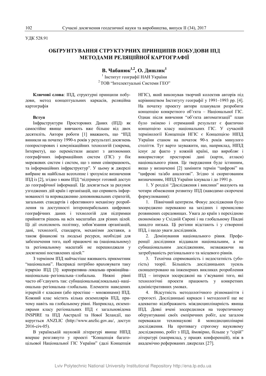| dc.identifier.citation | Чабанюк В. Обґрунтування структурних принципів побудови ІПД методами реляційної картографії / В. Чабанюк, О. Дишлик // Сучасні досягнення геодезичної науки та виробництва : збірник наукових праць. — Львів : Видавництво Львівської політехніки, 2017. — Том 2 (34). — С. 102–113. | |