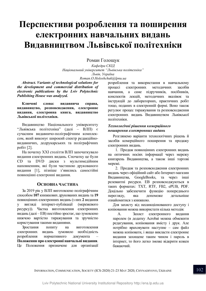 Перспективи розроблення та поширення електронних навчальних видань Видавництвом Львівської політехніки