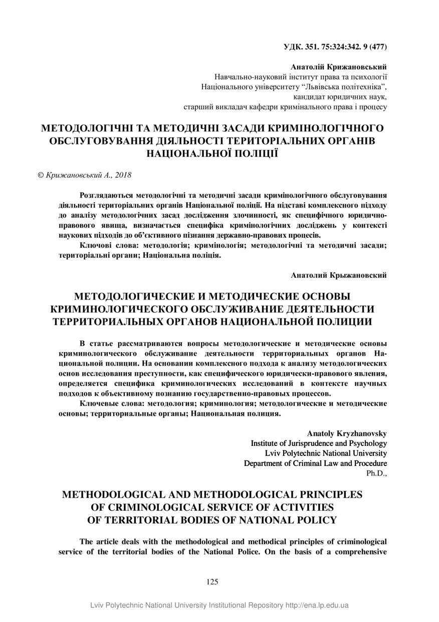 | dc.title.alternative | Methodological and methodological principles of criminological service of activities of territorial bodies of national policy | |