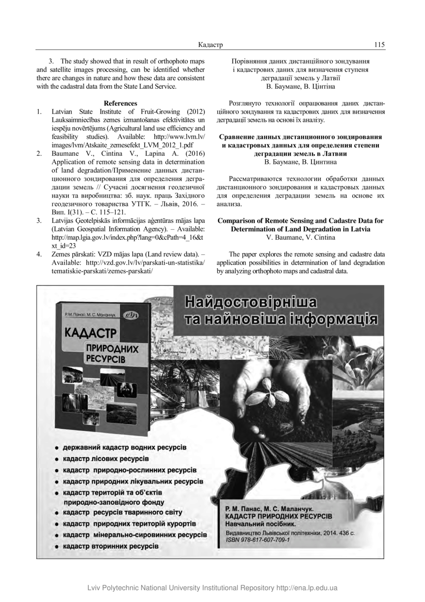 | dc.relation.referencesen | 6. Chetverikov B. Porivnialnyi analiz tsyfrovykh modelei reliefu, stvorenykh za rizni roky, Heodeziia, kartohrafiia i aerofotoznimannia, 2013, Iss. 78, P. 74–77. | |