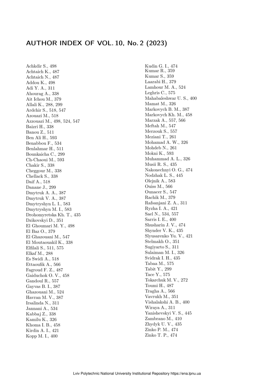 Contents // Mathematical Modeling and Computing. — Lviv : Lviv Politechnic Publishing House, 2023. — Vol 10. — No 2. — P. 606–611.