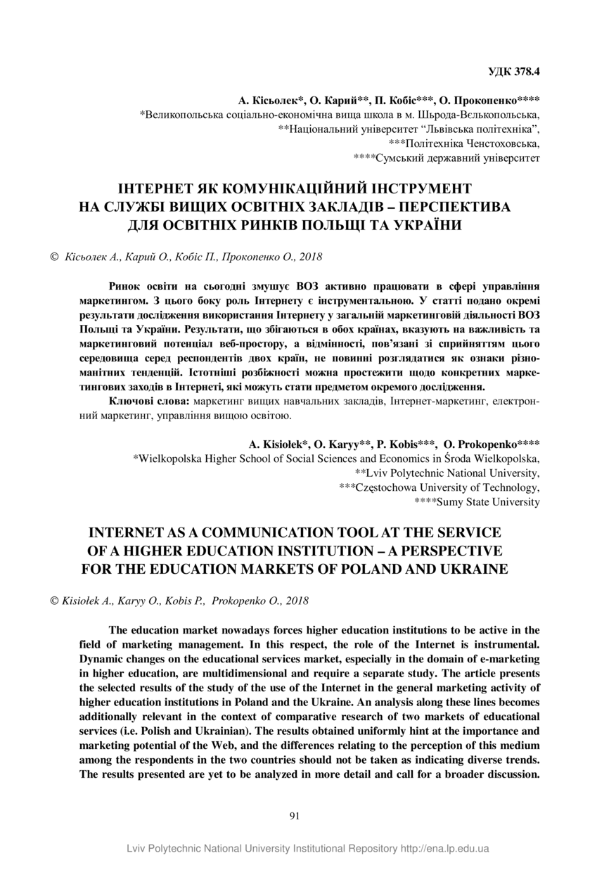 | dc.title.alternative | Internet as a communication toolat the service of a higher education institution – a perspective for the education markets of Poland and Ukraine | |