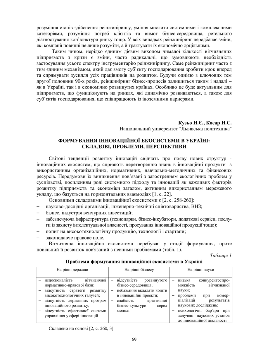 Кузьо Н. Є. Формування інноваційної екосистеми в Україні: складові, проблеми, перспективи / Н. Є. Кузьо, Н. С. Косар // Управління інноваційним процесом в Україні: проблеми комерціалізації науково-технічних розробок : тези доповідей VІІ Міжнародної науково-практичної конференції, 17–19 травня 2018 року, Львів. — Львів : Видавництво Львівської політехніки, 2018. — С. 69–70.