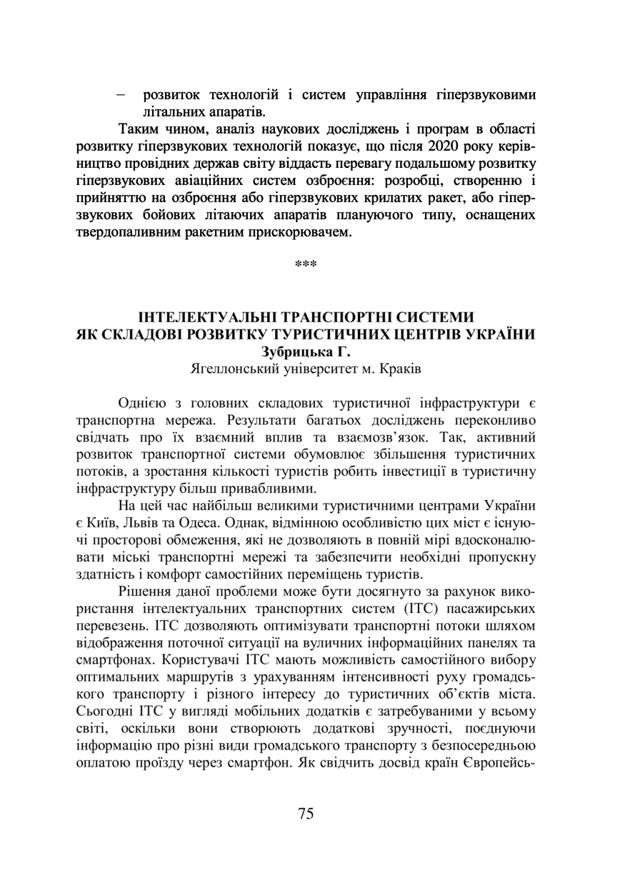 Зубрицька Г. Інтелектуальні транспортні системи як складові розвитку туристичних центрів України / Г. Зубрицька // GEOFORUM’2019 : тези доповідей 24 Міжнародної науково-технічної конференції, 10–12 квітня 2019 року, Львів. — Львів : Видавництво Львівської політехніки, 2019. — С. 75–76.