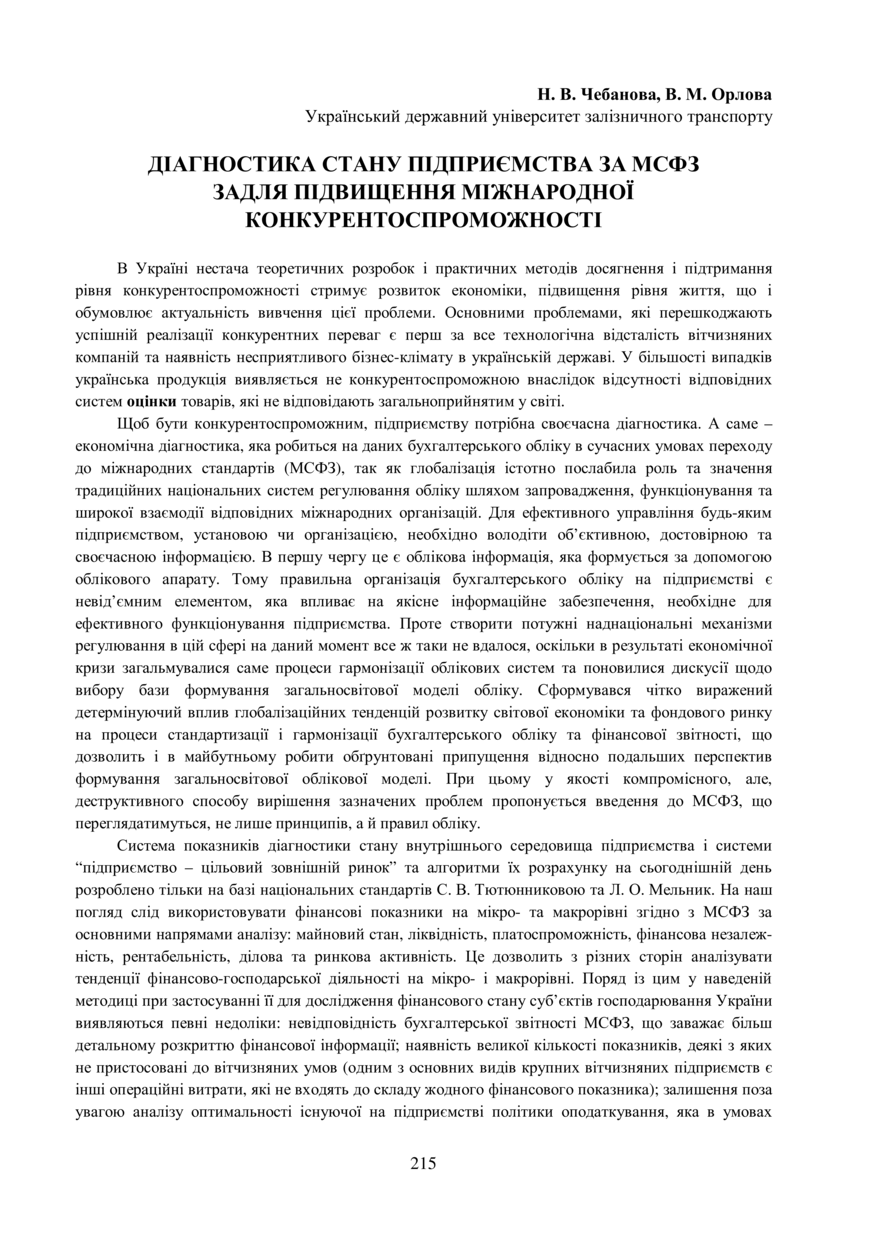 Діагностика стану підприємства за МСФЗ задля підвищення міжнародної конкурентоспроможності