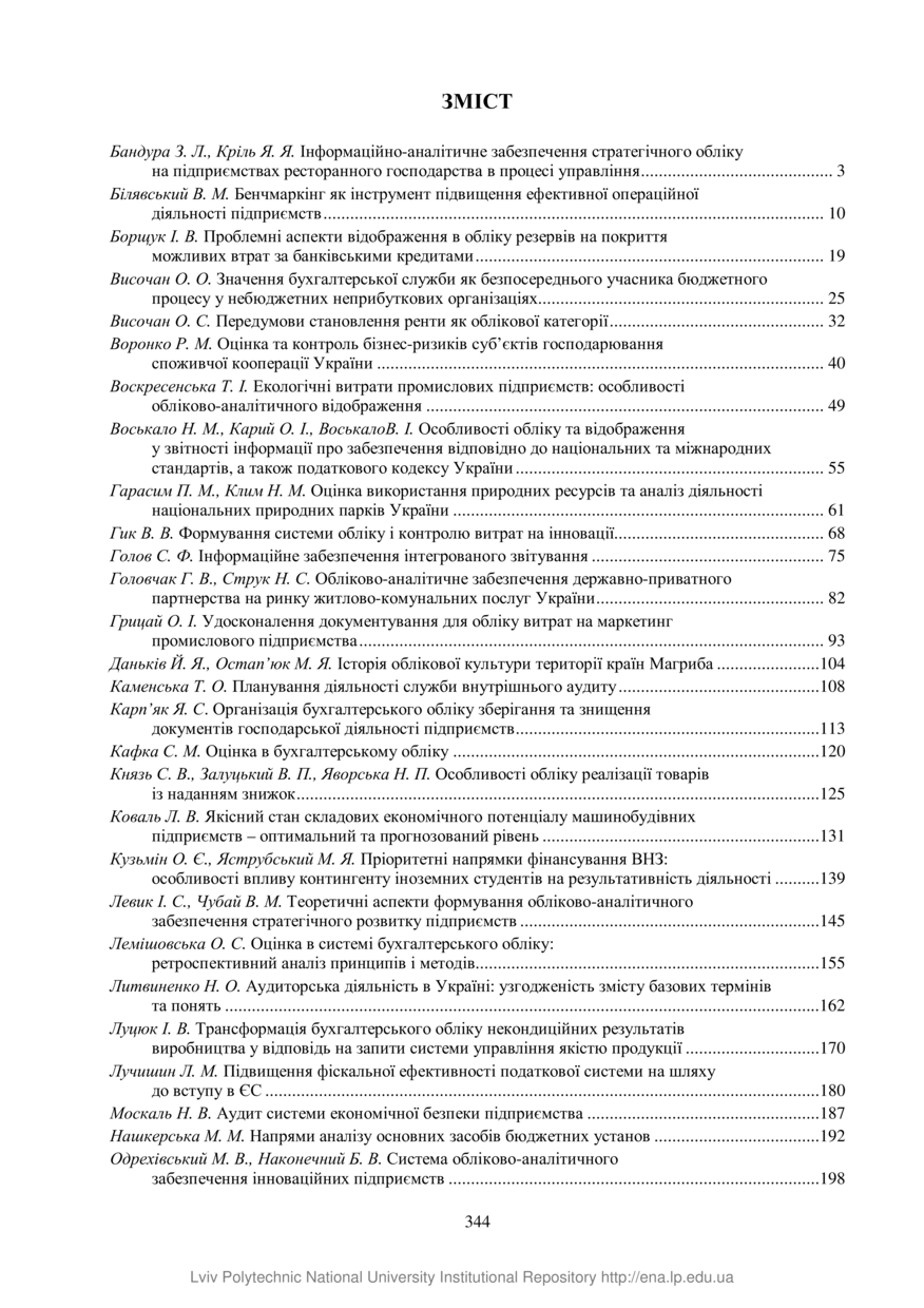 Зміст до Вісника Національного університету "Львівська політехніка". Серія : Менеджмент та підприємництво в Україні: етапи становлення і проблеми розвитку