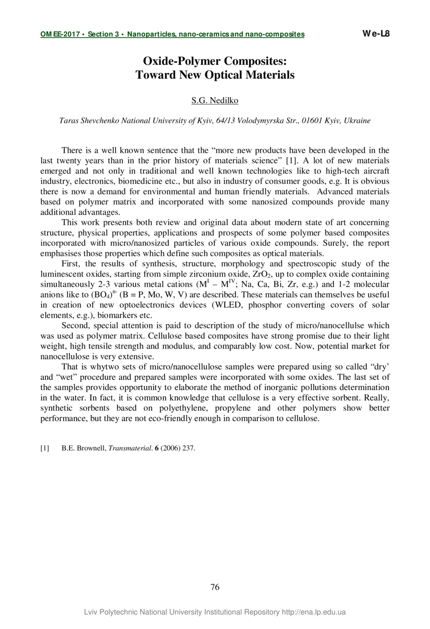 Nedilko S. G. Oxide-Polymer Composites: Toward New Optical Materials / S. G. Nedilko // Oxide Materials