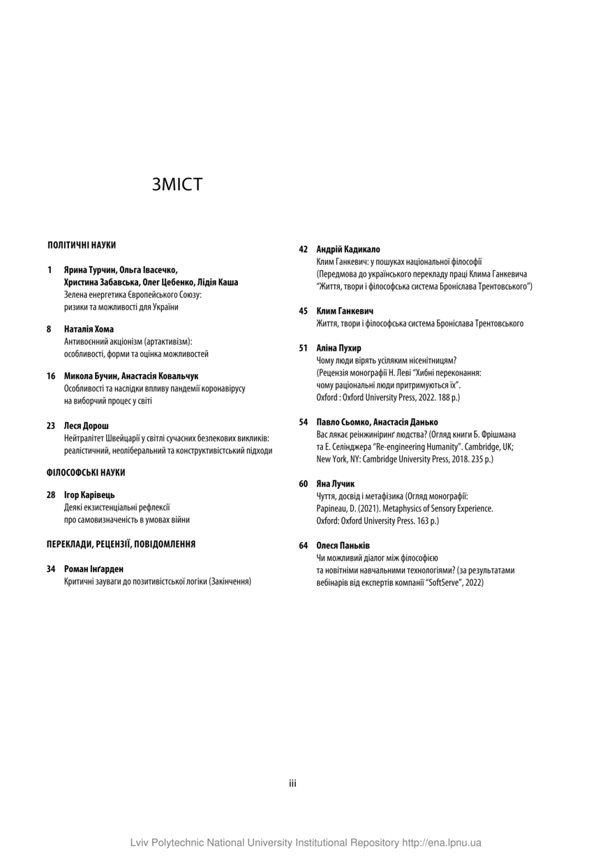 Contents // Humanitarian Vision. — Lviv : Lviv Politechnic Publishing House, 2022. — Vol 8. — No 2. — P. 67–68.