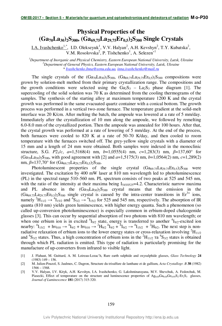 Lviv, Ukraine. — Lviv, 2017. — P. 159. — (5 materials for quantum and optoelectronics and detectors of radiation).