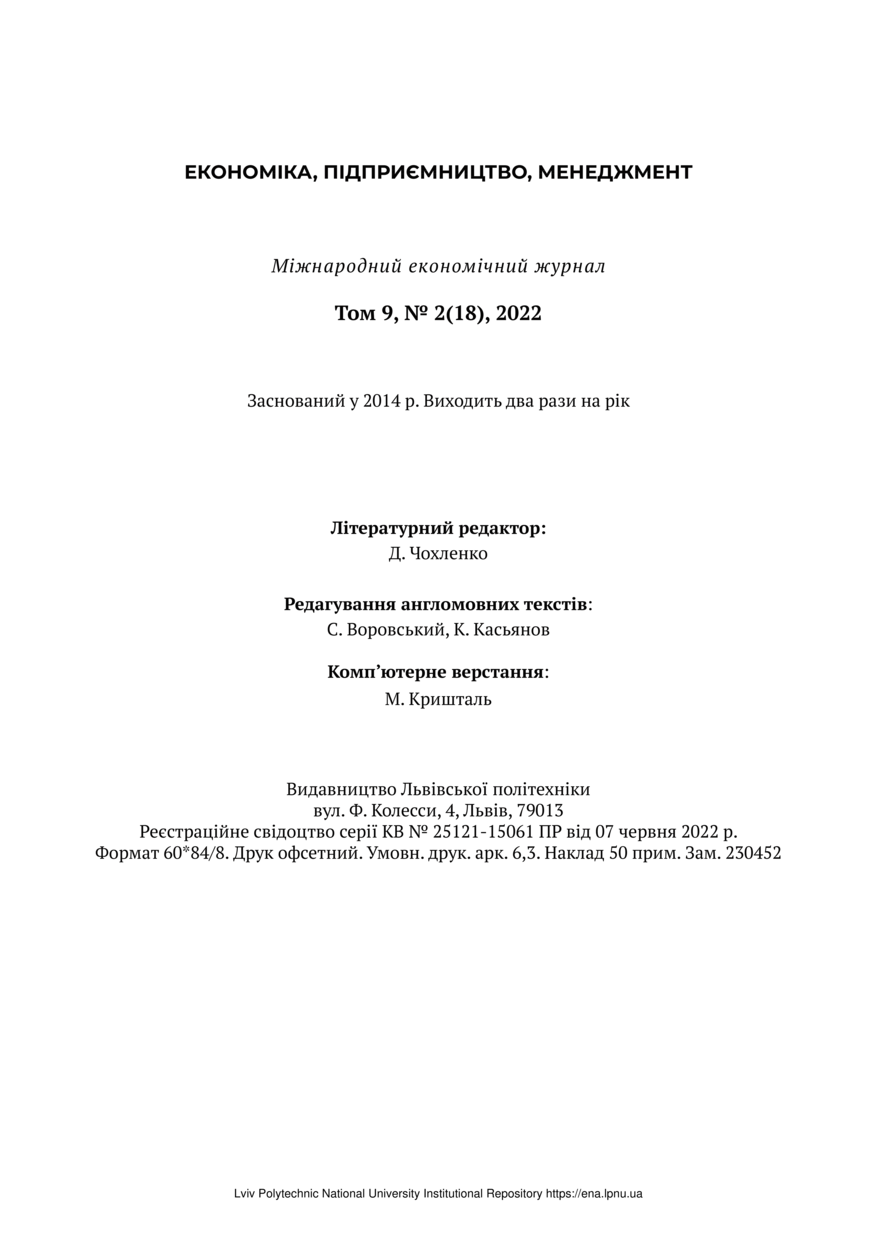 Видавнича сторінка // Economics, Entrepreneurship, Management. — Lviv : Lviv Politechnic Publishing House, 2022. — Vol 9. — No 2. — P. 53–55.
