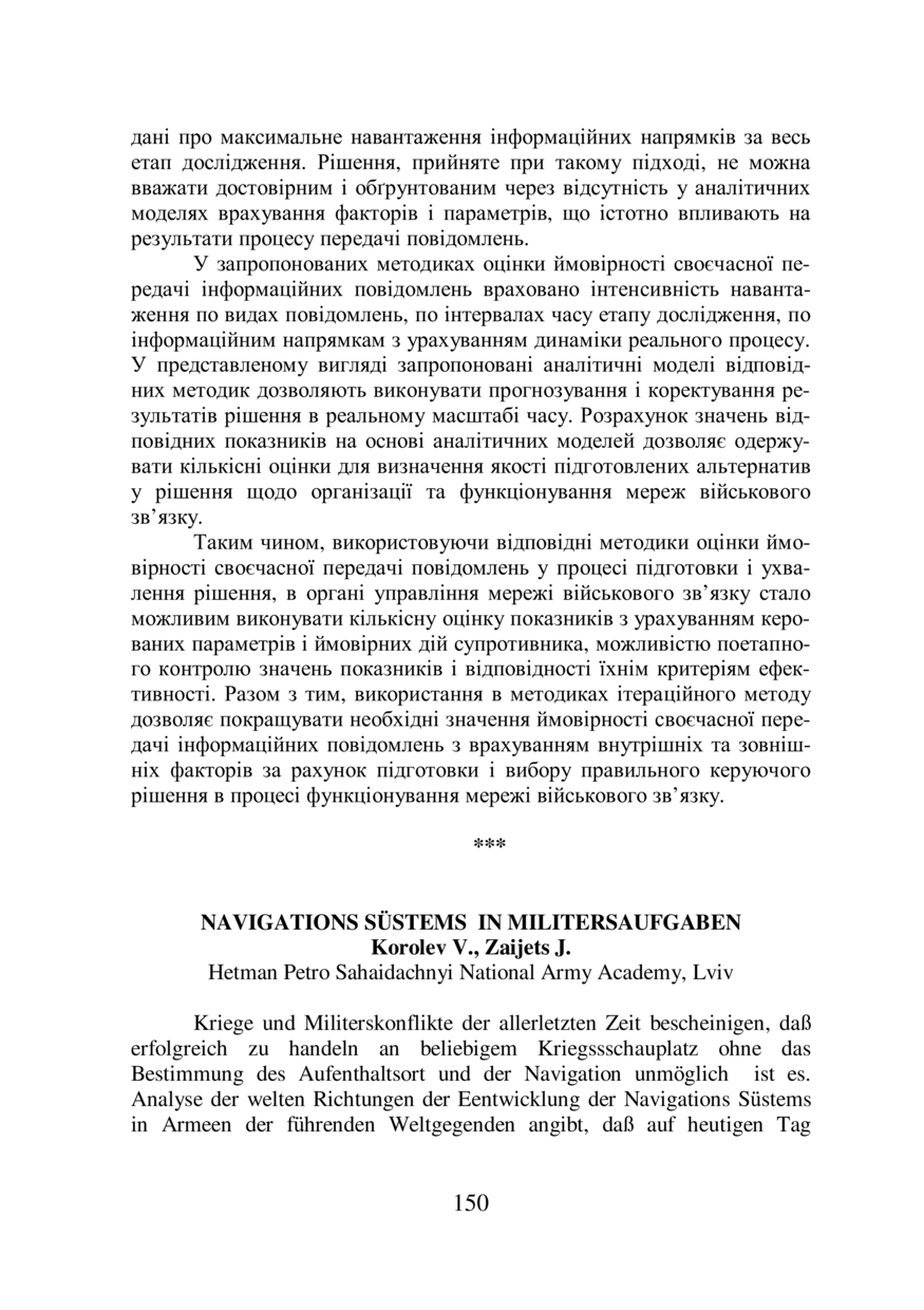Korolev V. Navigations Süstems in Militersaufgaben / V. Korolev, J. Zaijets // GEOFORUM’2019 : тези доповідей 24 Міжнародної науково-технічної конференції, 10–12 квітня 2019 року, Львів. — Львів : Видавництво Львівської політехніки, 2019. — С. 150–152.