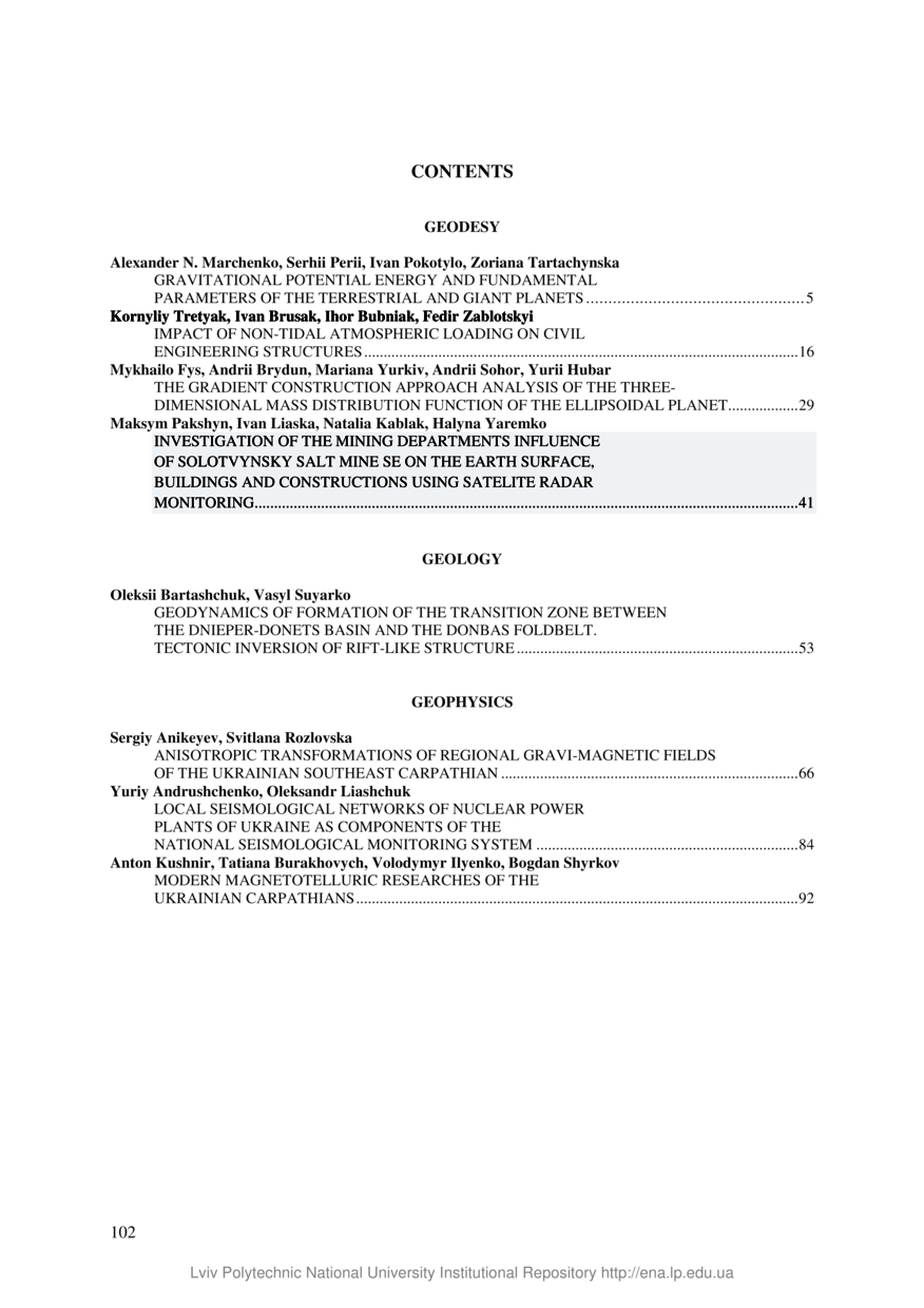 Зміст до “Геодинаміка” // Geodynamics. — Lviv : Lviv Politechnic Publishing House, 2021. — No 2(31). — P. 102–104.