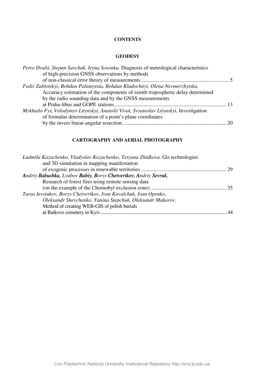 | dc.title | Зміст до “Геодезія, картографія і аерофотознімання” | |