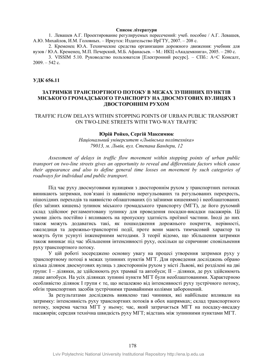 | dc.identifier.citation | Ройко Ю. Затримки транспортного потоку в межах зупинних пунктів міського громадського транспорту на двосмугових вулицях з двостороннім рухом / Юрій Ройко, Сергій Максимюк // Автобусобудування та пасажирські перевезення в Україні : тези доповідей III-ої Всеукраїнської науково-практичної конференції, Львів, 22-23 лютого 2018 року. — Львів : Видавництво Львівської політехніки, 2018. — С. 178–179. — (Інновації в перевезеннях колісним транспортом). | |
