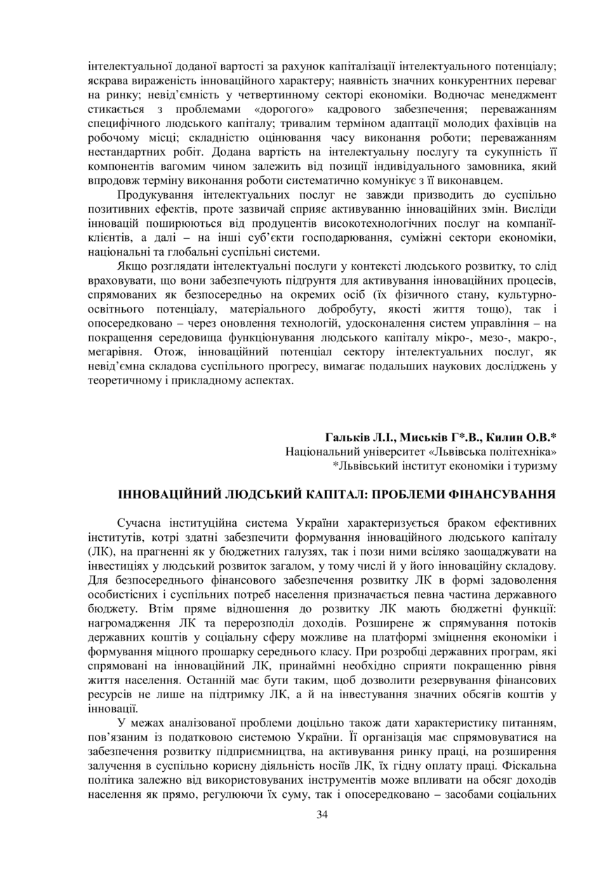 Інноваційний людський капітал: проблеми фінансування