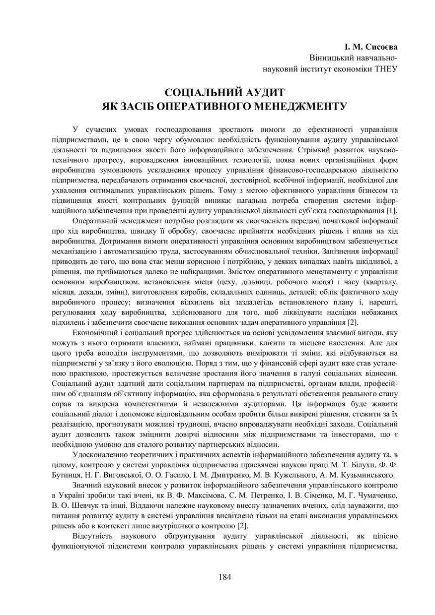 | dc.relation.referencesen | 2. Sysoieva I.M. Henezys sotsialnoho audytu. /Sysoieva I.M., Hordopolova N.V., Holovai N.M./Vseukrainskyi naukovo–vyrobnychyi zhurnal "Ekonomika. Finansy. Menedzhment: aktualni pytannia nauky i praktyky".–2019.–No 3, P.34-44. | |