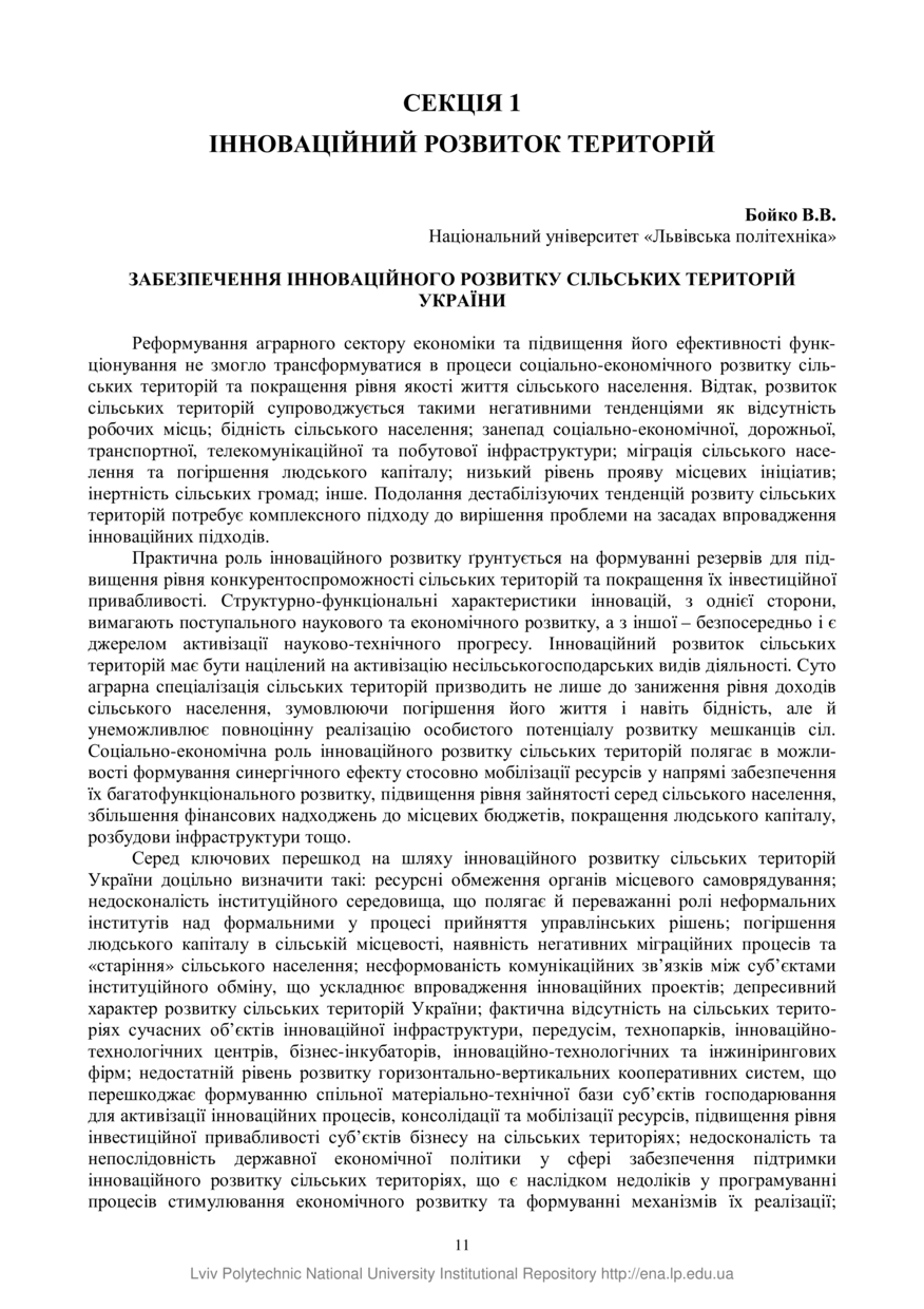 Забезпечення інноваційного розвитку сільських територій України