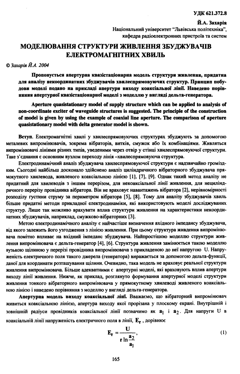 Захарія Й. А. Моделювання структури живлення збуджувачів електромагнітних хвиль / Й. А. Захарія // Вісник Національного університету “Львівська політехніка”. — Львів : Видавництво Національного університету “Львівська політехніка”, 2004. — № 522 : Комп’ютерні системи проектування. Теорія і практика. — С. 165–168.