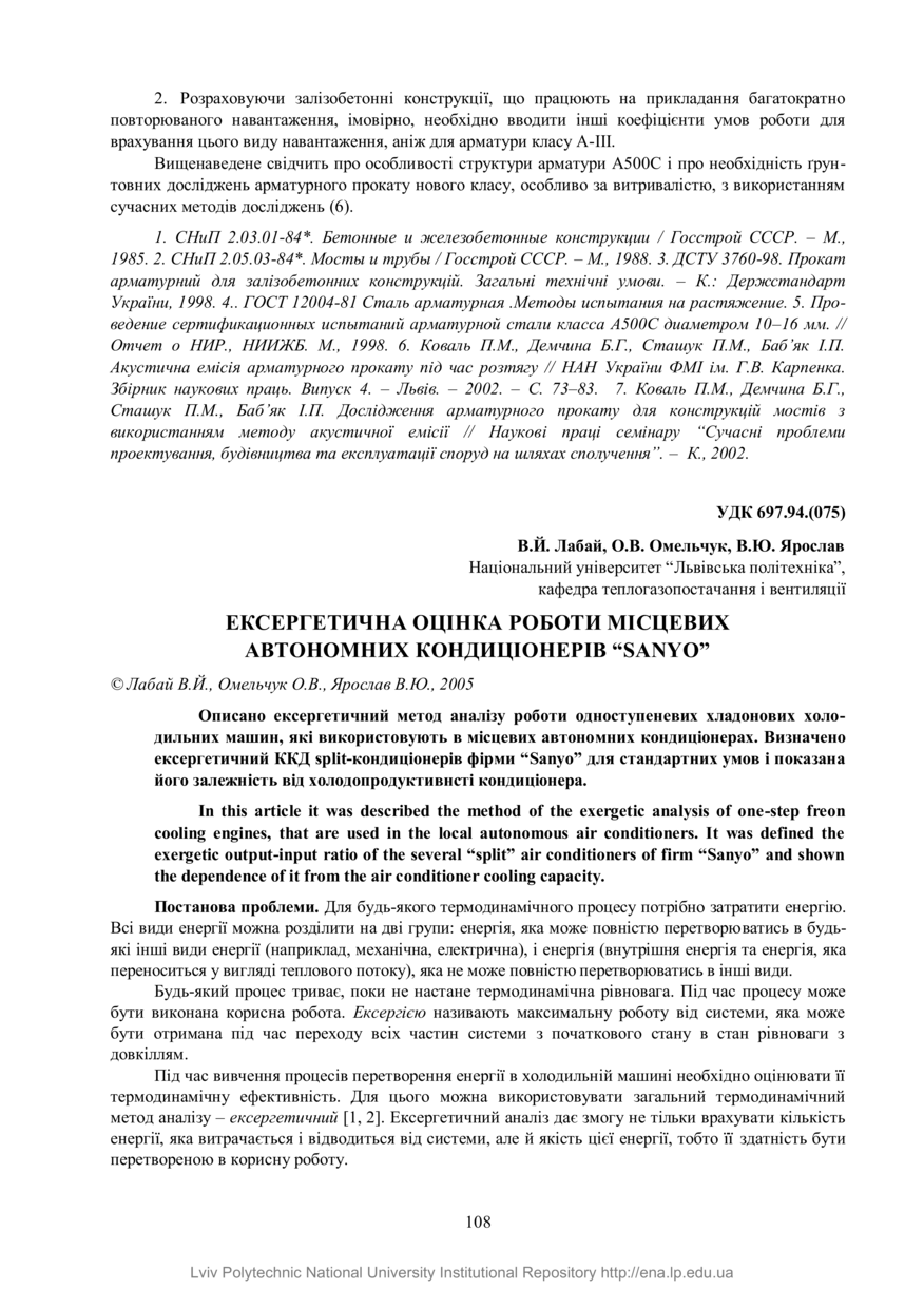 | dc.relation.referencesen | 4. Labai V., Omelchuk O. Ekserhetychna otsinka mistsevykh avtonomnykh kondytsioneriv, Visnyk NU "Lvivska politekhnika", 2002, No 460, P. 154–157. | |