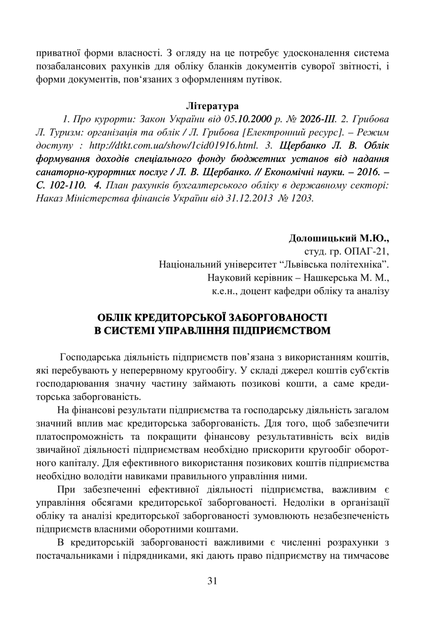 | dc.relation.references | 1. Сурніна К.С. Зобов’язання і кредиторська заборгованість, проблеми термінології і класифікації // Економіка: проблеми теорії та практики. Вип. 42. – Дніпропетровськ: Наука і освіта, 2014. – С.56-61. | |
