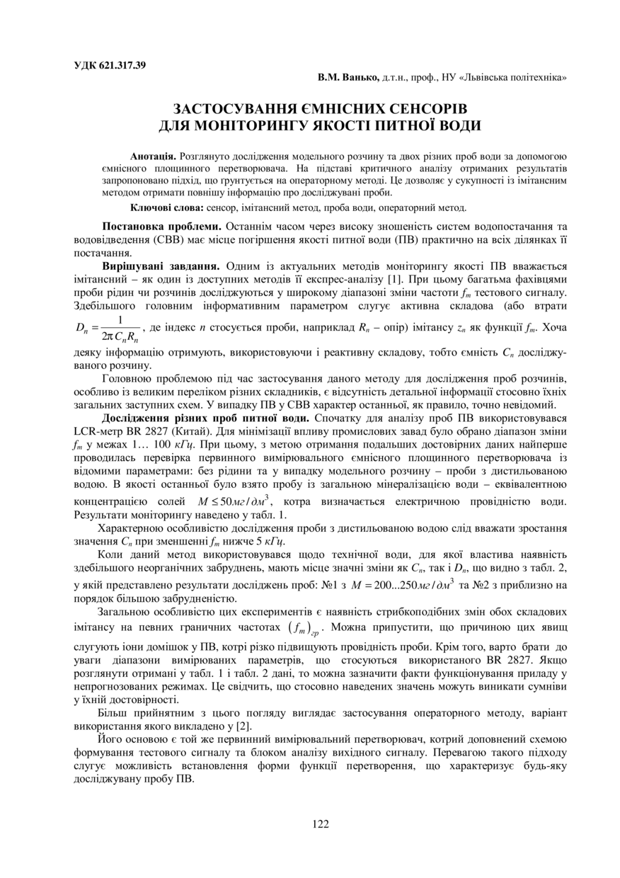 Застосування ємнісних сенсорів для моніторингу якості питної води