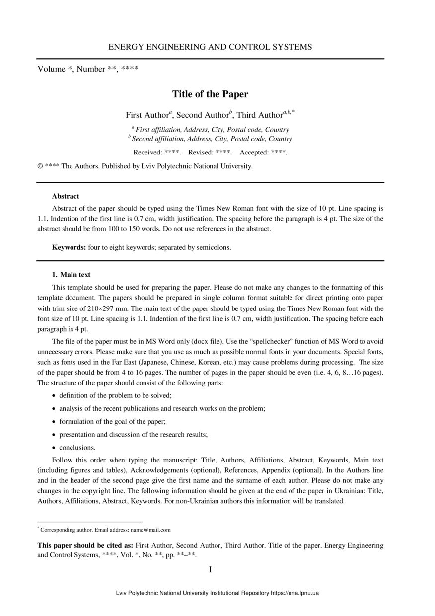 | dc.identifier.citation | Title of the Paper // Energy Engineering and Control Systems. — Lviv : Lviv Politechnic Publishing House, 2024. — Vol 10. — No 2. — P. 161–168. | |