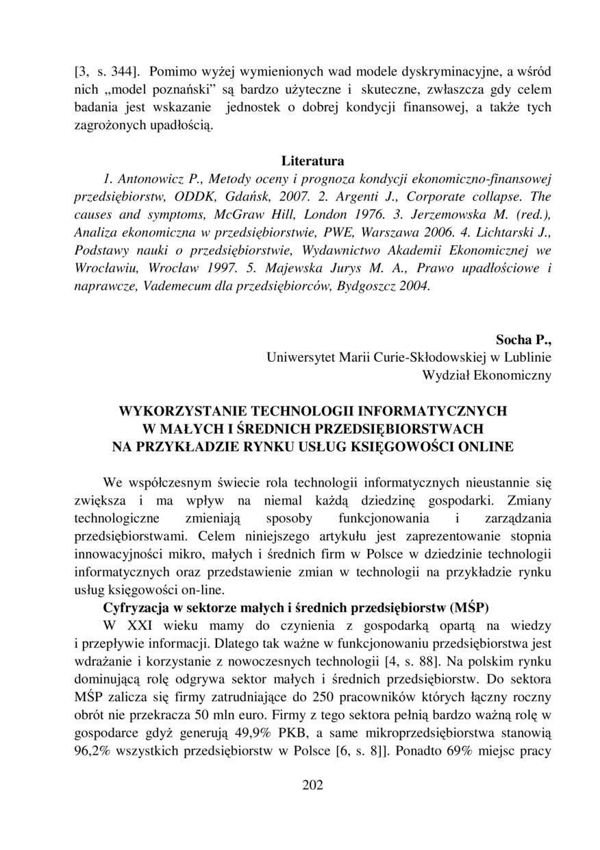 Socha P. Wykorzystanie technologii informatycznych w małych i średnich przedsiębiorstwach na przykładzie rynku usług księgowości online / P. Socha // Облік, аналіз і контроль в системі управління суб’єктами економіки : тези доповідей ІV Міжнародної студентської наукової конференції, 18–19 жовтня 2018 року, Львів. — Львів : Видавництво Львівської політехніки, 2018. — С. 202–204. — (Проблеми та перспективи використання інформаційних систем і технологій в обліку, аналізі та аудиті).