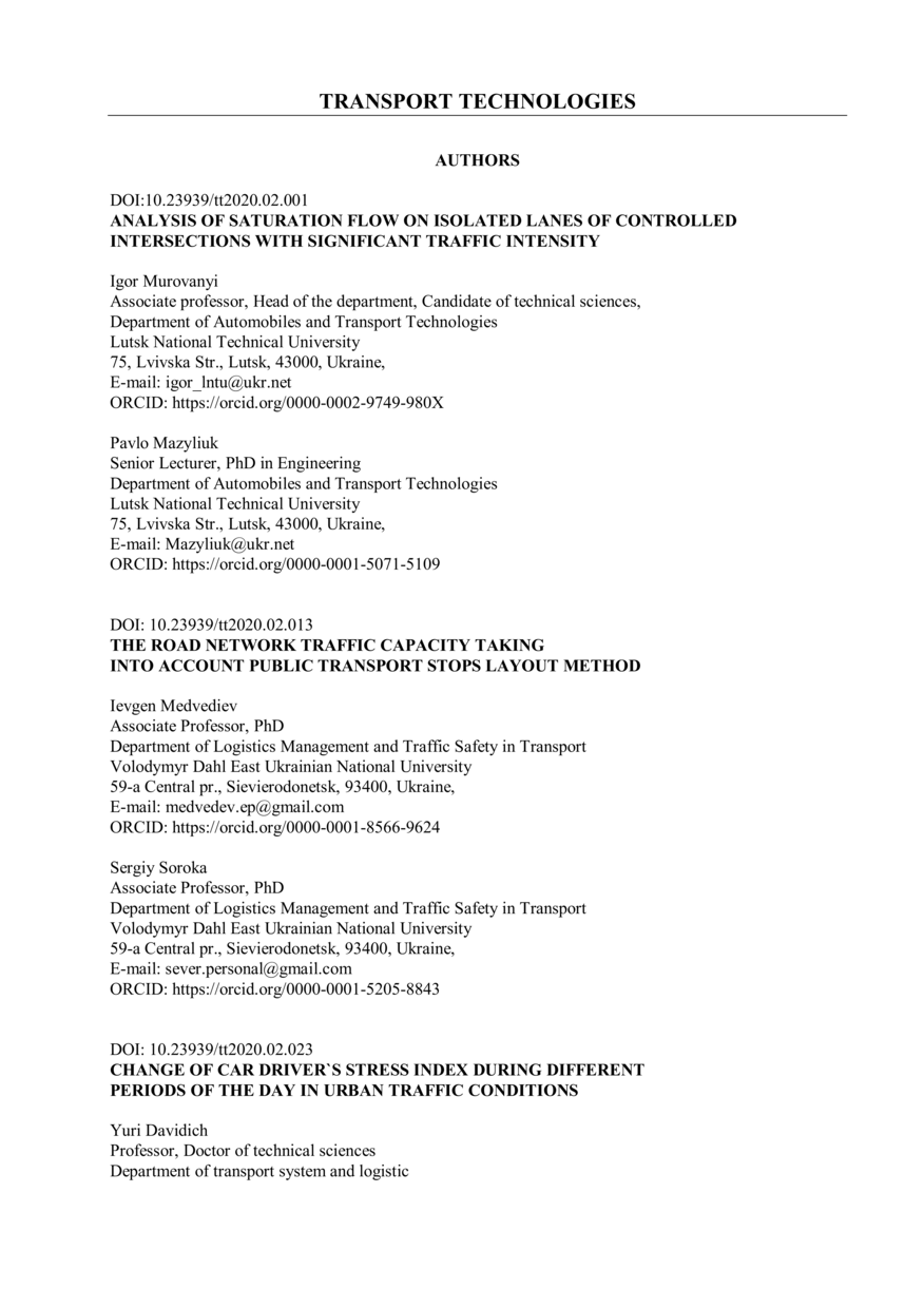 Authors // Transport Technologies. — Lviv : Lviv Politechnic Publishing House, 2020. — Vol 1. — No 2. — P. 76–78.