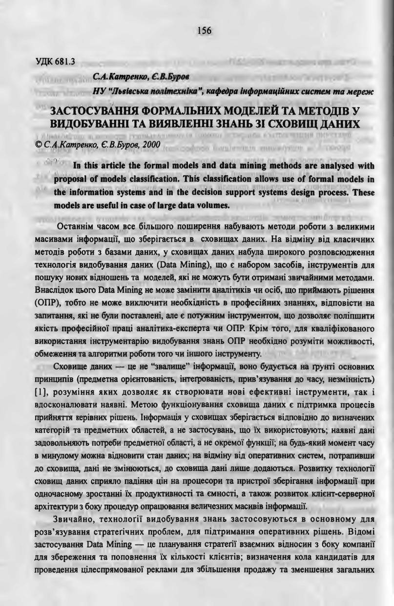 Катренко С. А. Застосування формальних моделей та методів у видобуванні та виявленні знань зі сховищ даних / С. А. Катренко, Є. В. Буров // Вісник Національного університету “Львівська політехніка”. — Львів : Видавництво Національного університету “Львівська політехніка”, 2000. — № 406 : Інформаційні системи та мережі. — С. 156–163.