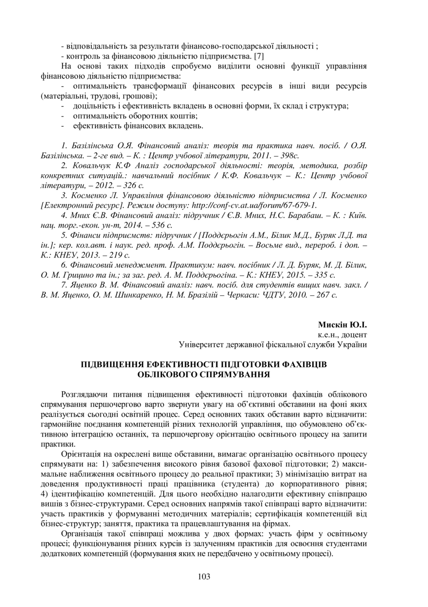 Мискін Ю. І. Підвищення ефективності підготовки фахівців облікового спрямування / Ю. І. Мискін // Управління економічними процесами на макро- і мікрорівні: проблеми та перспективи вирішення : матеріали ІІ Міжнародної науково-практичної інтернет-конференції молодих вчених, 14–15 квітня 2016 року, Львів. — Львів : Видавництво Львівської політехніки, 2016. — С. 103–104. — (Управління операційною, інвестиційною та фінансовою діяльністю суб’єктів господарювання).