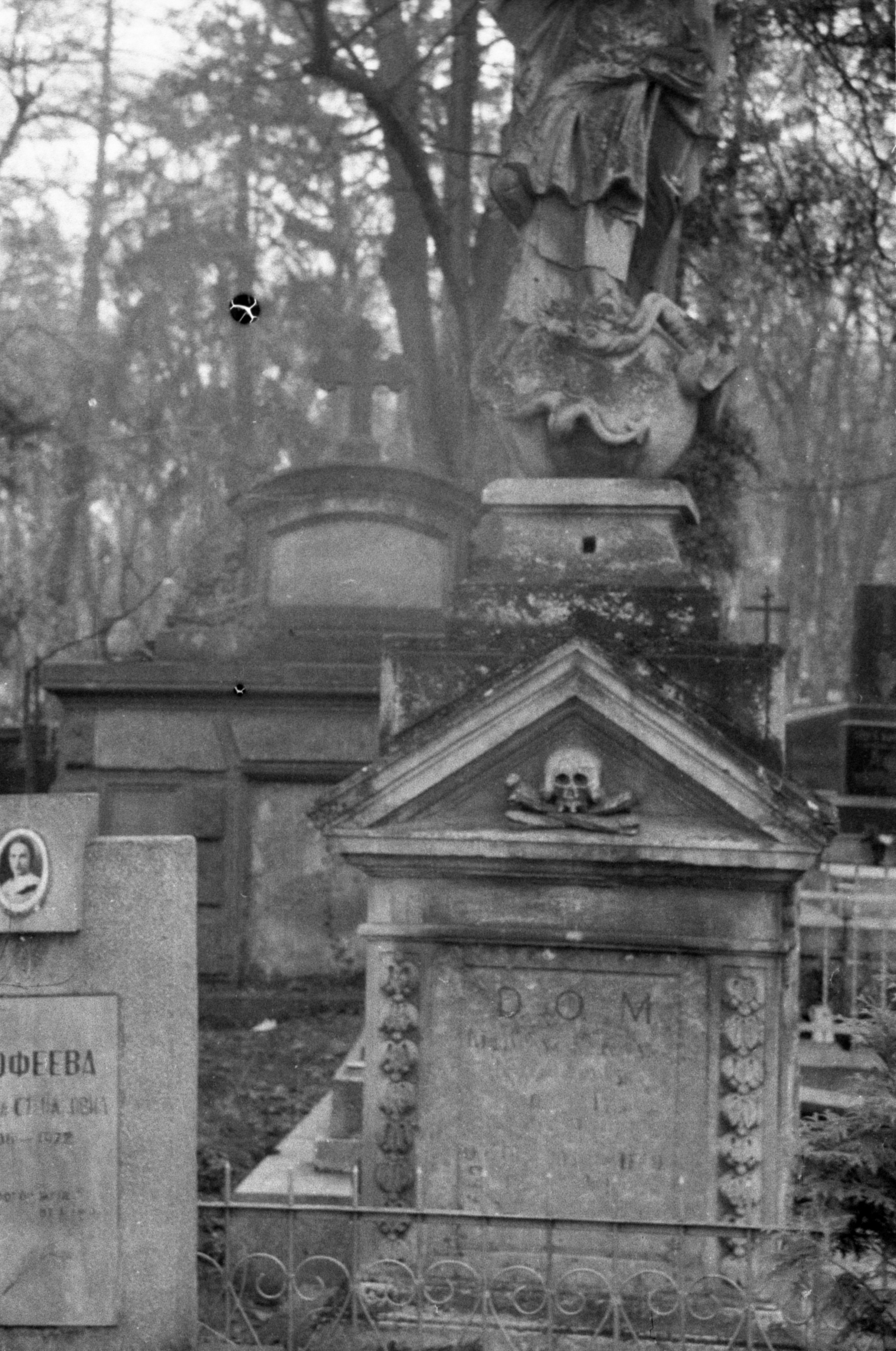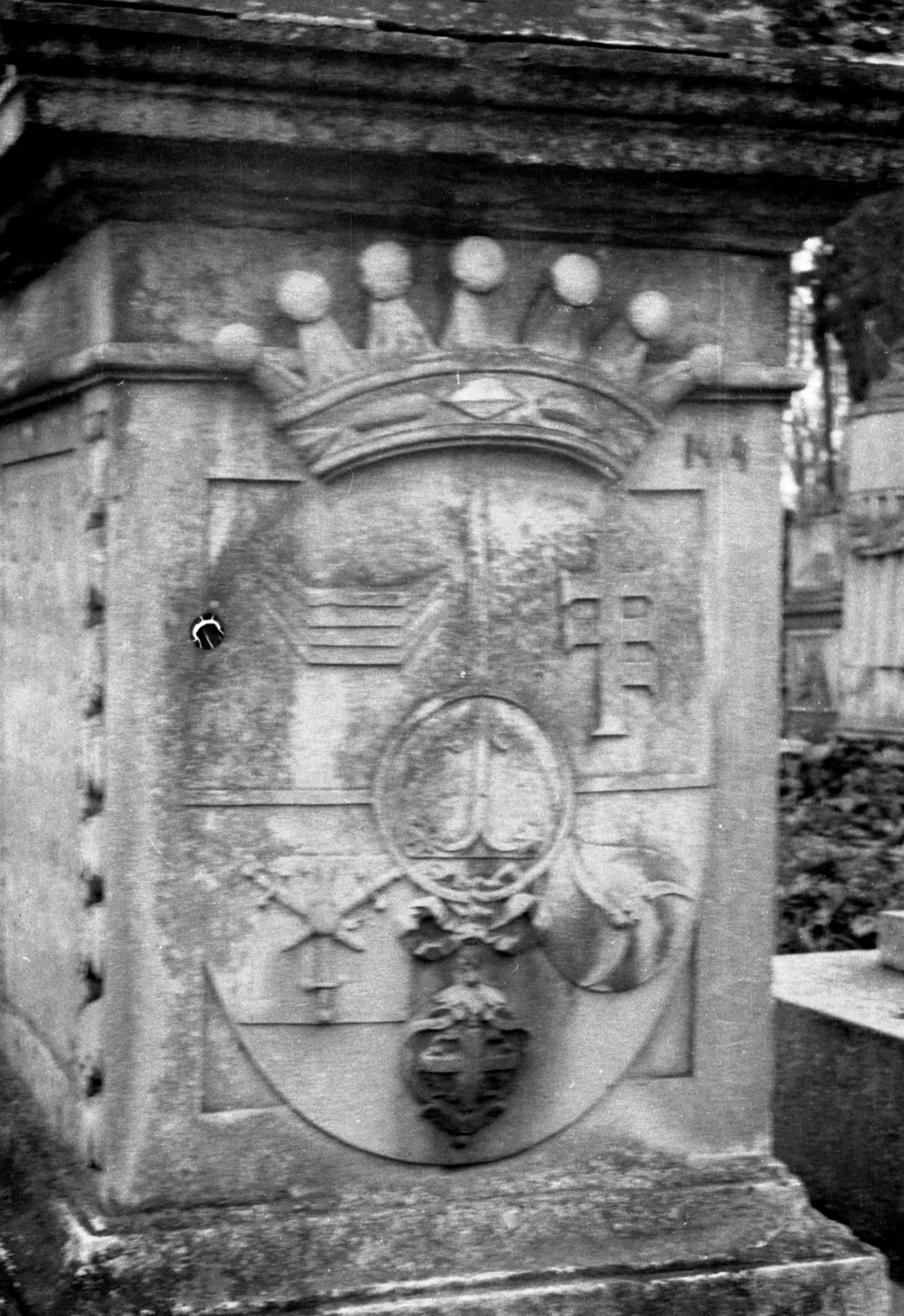 На другій — постамент з інскрипцією та барельєфами черепа і кісток.