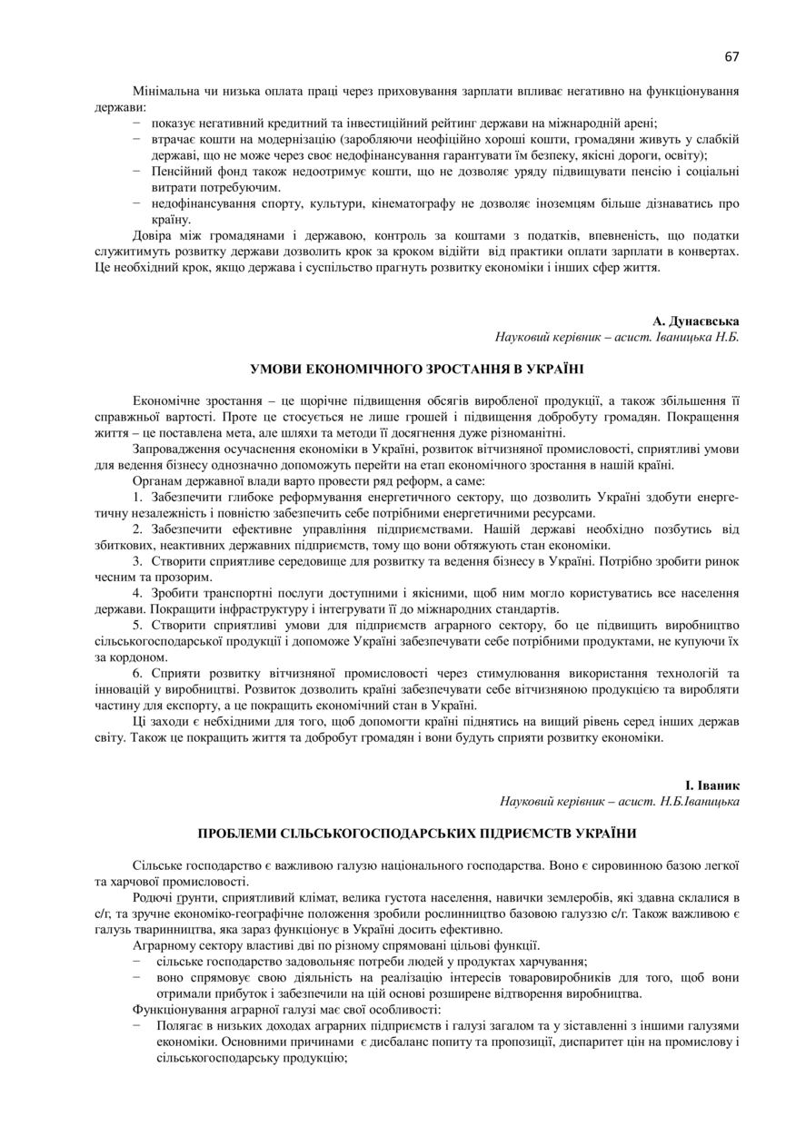 Дунаєвська А. Умови економічного зростання в Україні / А. Дунаєвська, Н. Б. Іваницька // 77-ма Студентська науково-технічна конференція. Секція "Публічне управління та адміністрування" : збірник тез доповідей, 7 листопада 2019 року, Львів. — Львів : Видавництво Львівської політехніки, 2019. — С. 67. — (Економічна теорія та історія розвитку економіки).
