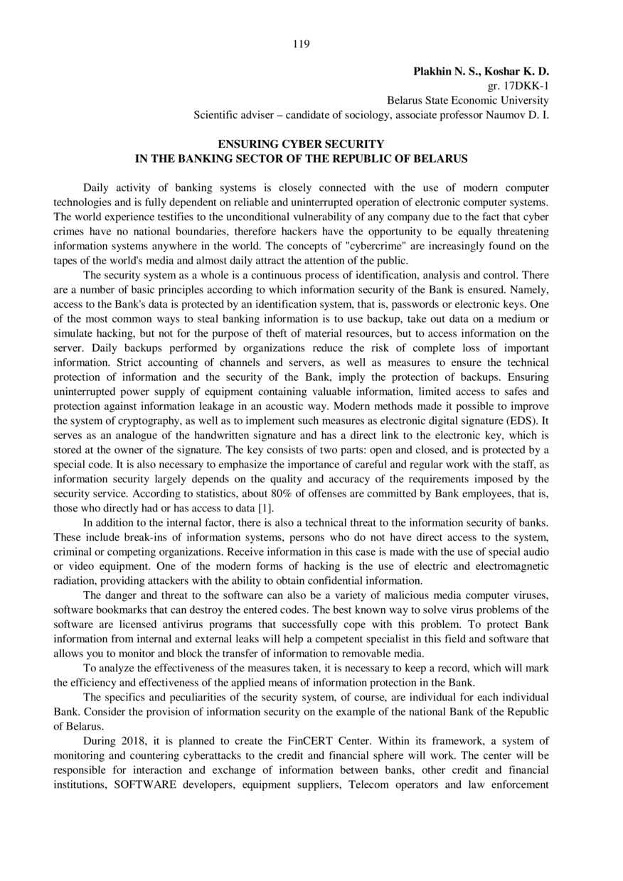 Ensuring cyber security in the banking sector of the republic of Belarus