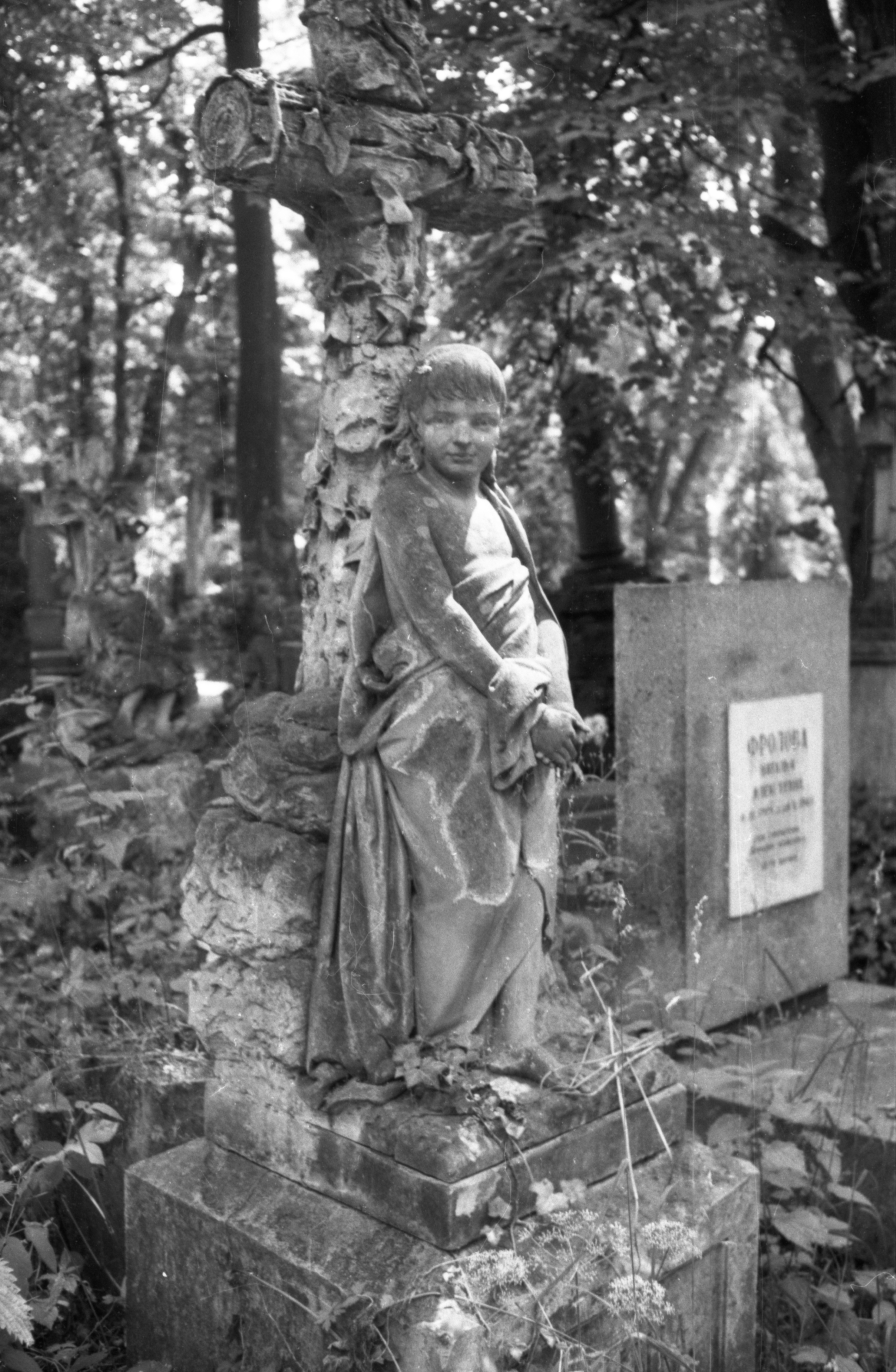 Надгробок — постамент, увінчаний скульптурою дівчинки біля хреста, опустивши вниз ручки.