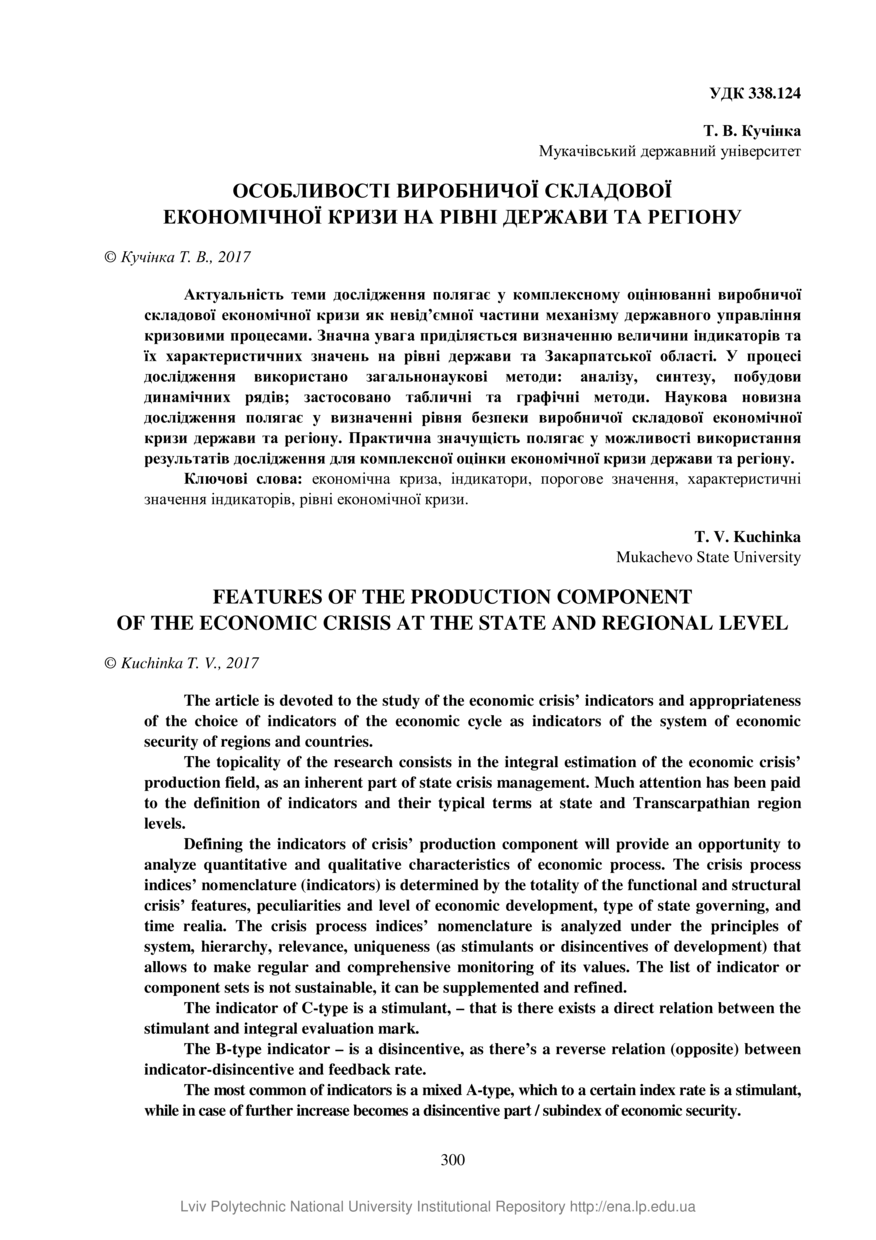 | dc.title | Особливості виробничої складової економічної кризи на рівні держави та регіону | |