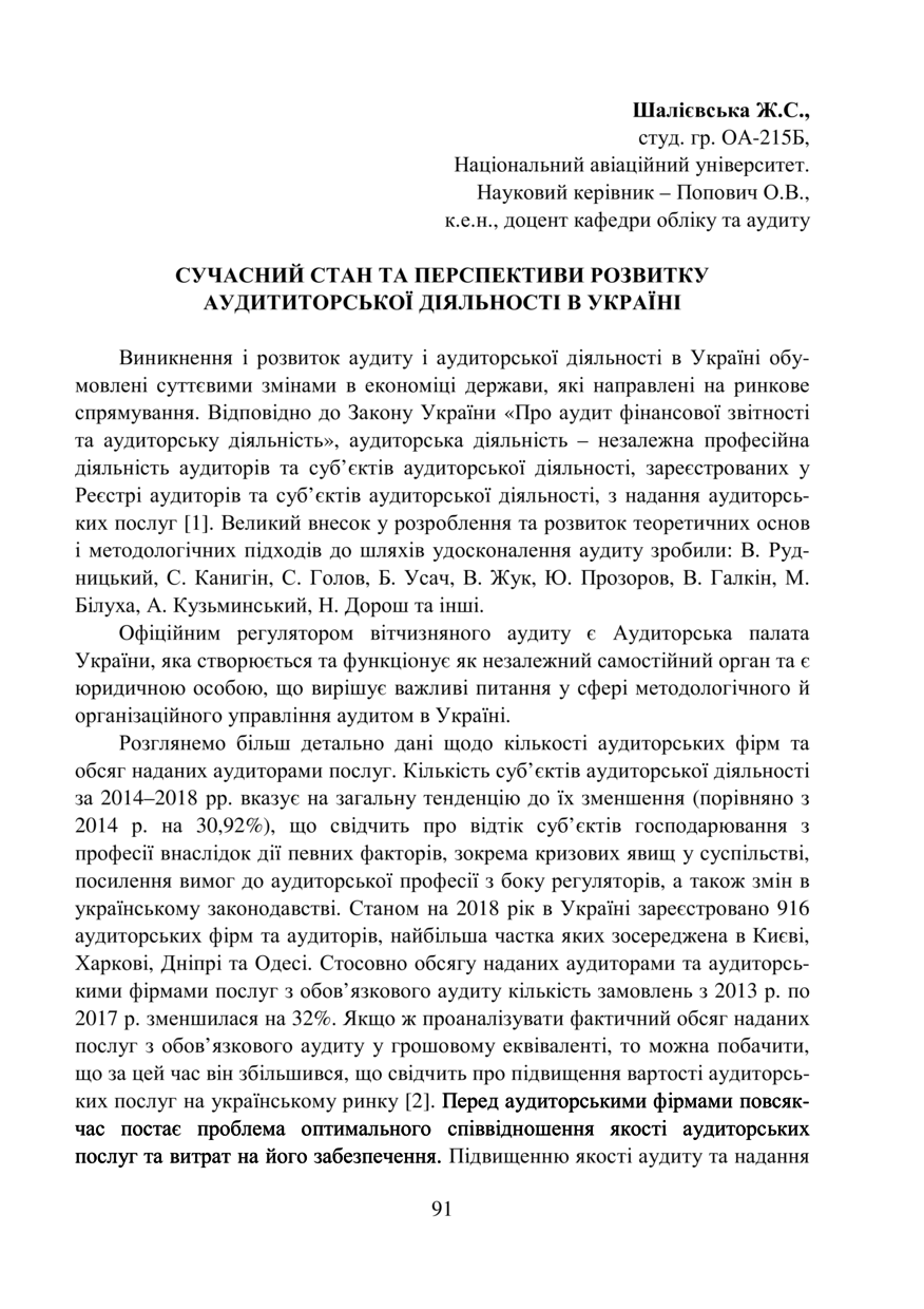 Шалієвська Ж. С. Сучасний стан та перспективи розвитку аудиторської діяльності в Україні / Ж. С. Шалієвська, О. В. Попович // Облік, аналіз і контроль в управлінні суб’єктами економіки : тези доповідей V Міжнародної студентської наукової конференції, 18 жовтня 2019 року, Львів. — Львів : Видавництво Львівської політехніки, 2019. — С. 91–92. — (Проблеми та перспективи розвитку аудиторської діяльності в Україні).