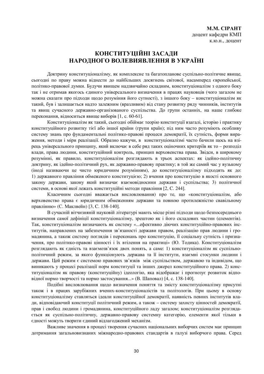 Сірант М. М. Конституційні засади народного волевиявлення в Україні / М. М. Сірант // Захист прав і свобод людини та громадянина в умовах формування правової держави : збірник тез VIIІ Всеукраїнської науково-практичної конференції, 30 травня 2019 року, Львів. — Львів : Видавництво Львівської політехніки, 2019. — С. 30–31. — (Історико-правові, конституційні та міжнародно-правові аспекти захисту прав і свобод людини та громадянина в умовах формування правової держави).