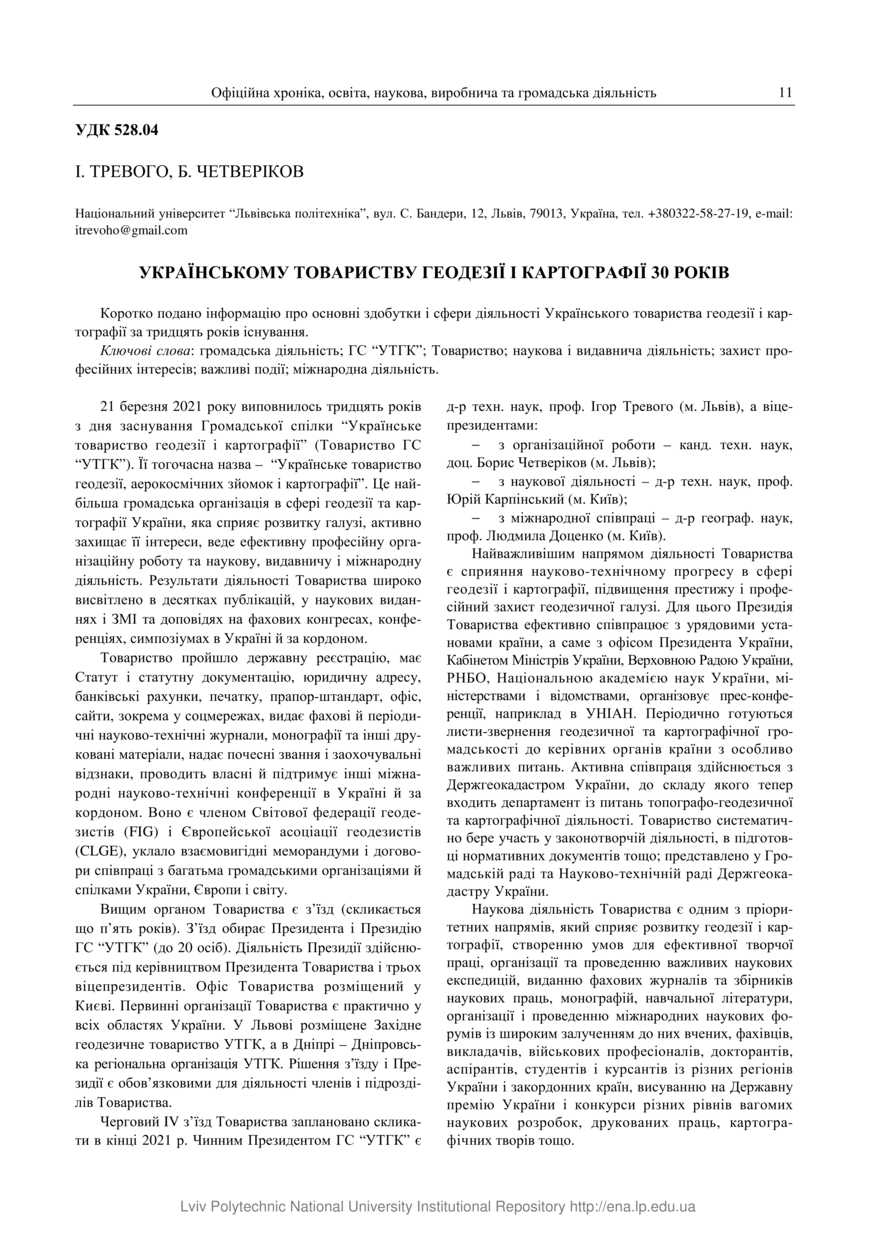 | dc.title.alternative | Ukrainian society of geodesy and cartography 30 years | |