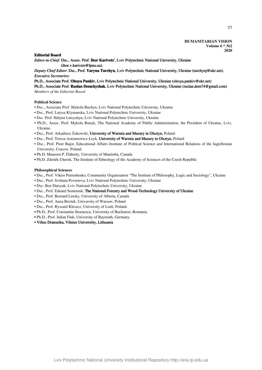 Зміст // Гуманітарні візії. — Львів : Видавництво Львівської політехніки, 2020. — Том 6. — № 2. — С. 57–60.