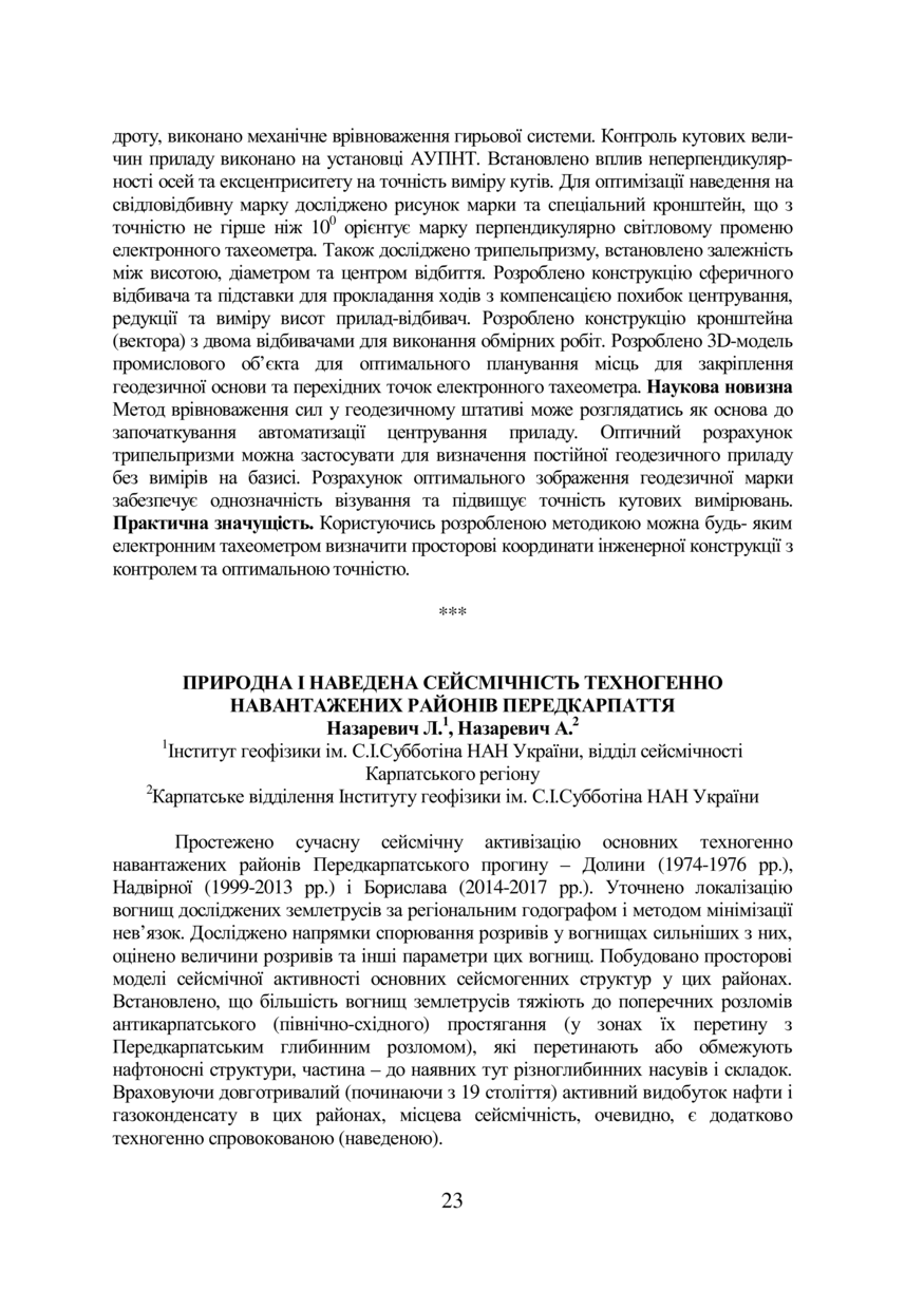 Назаревич Л. Т. Природна і наведена сейсмічність техногенно навантажених районів Передкарпаття / Л. Назаревич, А. Назаревич // GEOFORUM’2018 : тези доповідей 23 Міжнародної науково-технічної конференції, присвяченої професійному святу працівників геології, геодезії і картографії України, 18–20 квітня 2018 року, Львів. — Львів : Видавництво Львівської політехніки, 2018. — С. 23–24.