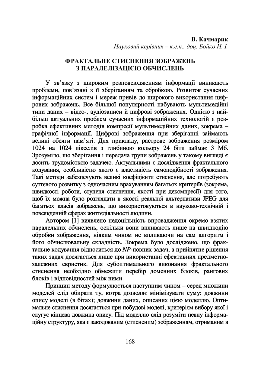 Фрактальне стиснення зображень з паралелізацією обчислень