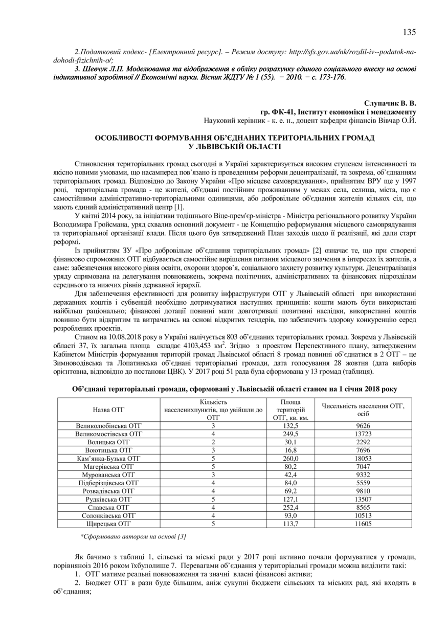 Особливості формування об’єднаних територіальних громад У Львівській області