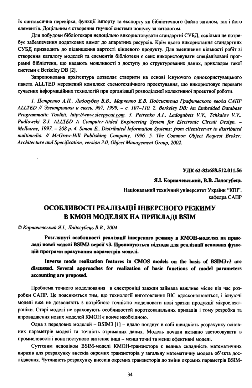 Корначевський Я. І. Особливості реалізації інверсного режиму в КМОН моделях на прикладі BSIM / Я. І. Корначевський, В. В. Ладогубець // Вісник Національного університету “Львівська політехніка”. — Львів : Видавництво Національного університету “Львівська політехніка”, 2004. — № 522 : Комп’ютерні системи проектування. Теорія і практика. — С. 34–39.