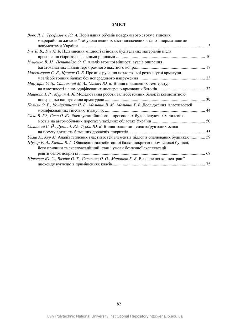 | dc.identifier.citationen | Zmist // Visnyk natsionalnoho universytetu "Lvivska politekhnika". Serie: Teoriia i praktyka budivnytstva. — Vydavnytstvo Lvivskoi politekhniky, 2018. — No 904. — P. 82. | |