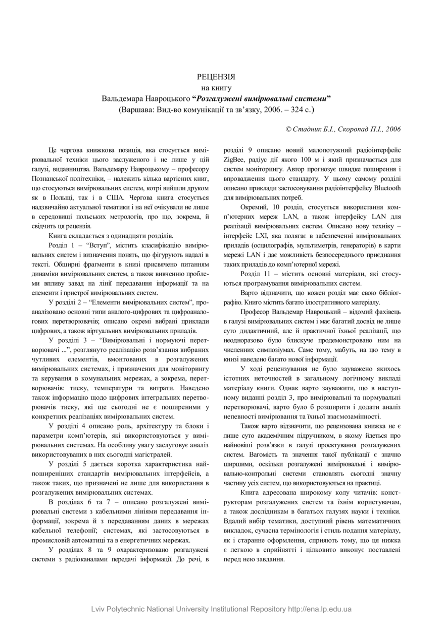 | dc.title | Рецензія на книгу Вальдемара Навроцького “Розгалужені вимірювальні системи” | |